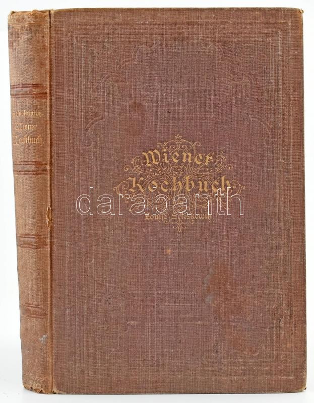 Seleskowitz, Louise: Wiener Kochbuch. (Wien, 1883, Ignaz Lienhart), 462 p. + XV t. (fekete-fehér képek, közte egy kétoldalas). Negyedik kiadás. Német nyelven. Kiadói egészvászon-kötés, kissé sérült, fakó, kopottas borítóval, néhány foltos (egy erősebben tintafoltos) lappal, hiányzó címlappal.