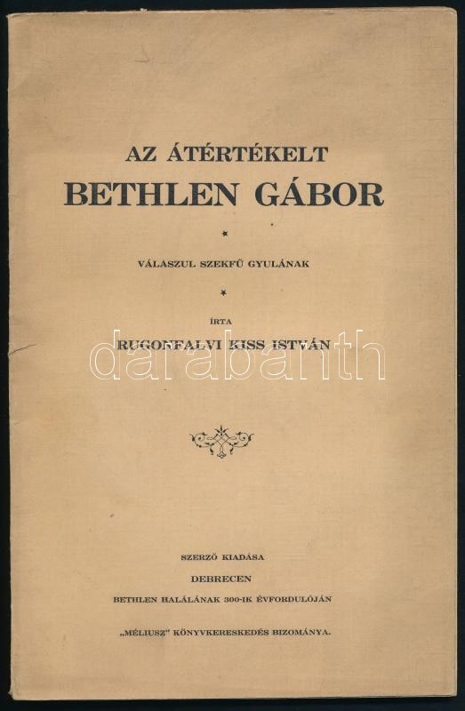 https://www.darabanth.com/en/427-Online-auction/427.0/Books/Books-History~1500011/Rugonfalvi-Kiss-Istvan-Az-atertekelt-Bethlen-Gabor-Valaszul-Szekfu-Gyulanak-Debrecen-19~II2730385