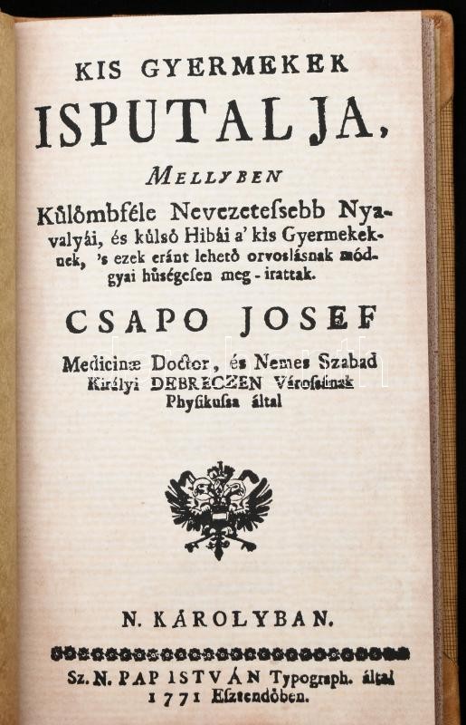 Csapó József: Kis gyermekek isputálja, mellyben külömbféle nevezeteseb... https://www.darabanth.com/en/427-Online-auction/427.0/Books/Books-Natural-sciences-Medicine~1500017/Csapo-Jozsef-Kis-gyermekek-isputalja-mellyben-kulombfele-nevezetesebb-nyavalyai-es-kulsC5~II2733057