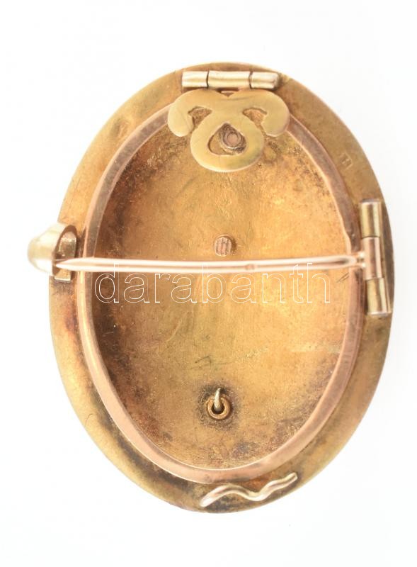 14K arany (Au) bross gyönggyel és zafirral?, jelzett, mesterjegyes 10,...