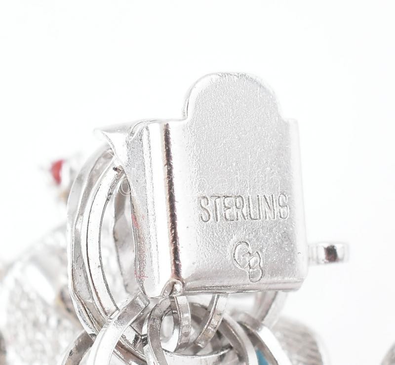 Ezüst (Ag) karlánc, sok kis függő figurával, zsuzsuval. Jelzett 102 g