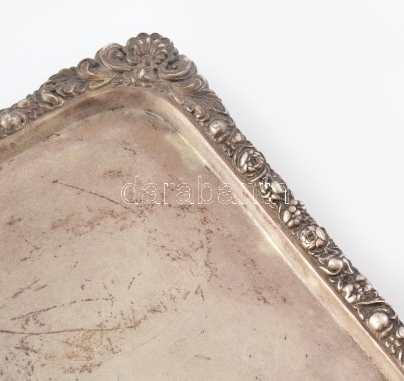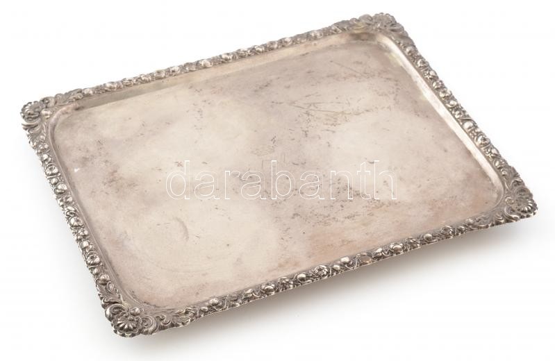 Ezüst (Ag) tálca. Koronás, A.A. monogrammal vésett, jelzett: 1836 antik bécsi fémjel, STM mester jegy: Stephan Mayerhofer. nettó: 563 g. 22,5x28,2 cm