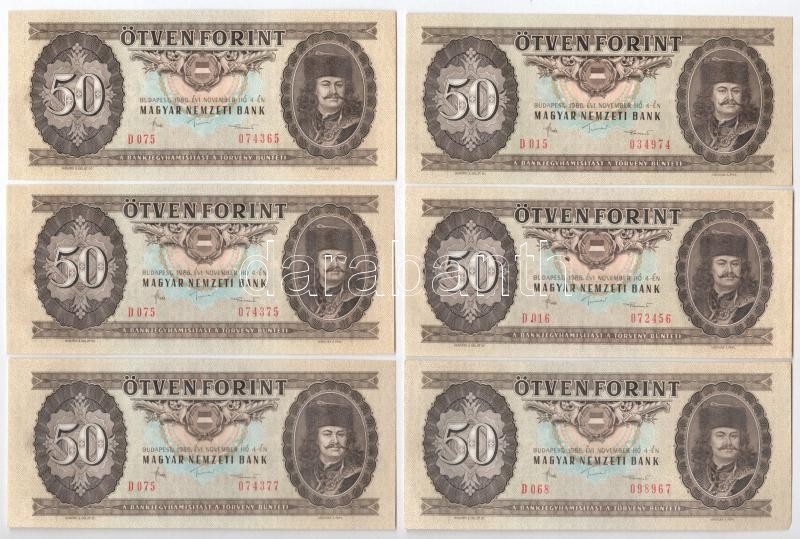 Hungar... https://www.darabanth.com/en/427-Online-auction/427.0/Numismatics/Hungarian-Banknotes~2000007/1986-50Ft-6x-kozte-nehany-kozeli-sorszam-TI-I-egyiken-fo-Hungary-1986-50-Forint-6x-co~II2730468