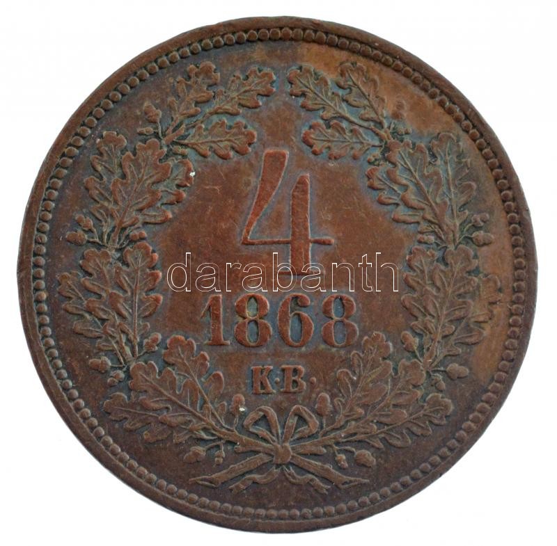 https://www.darabanth.com/en/427-Online-auction/427.0/Numismatics/Hungarian-coins-and-coins-with-Hungarian-mint-marks~2000008/1868KB-4kr-Cu-T2-patina-ph-Adamo-M71~II2724981
