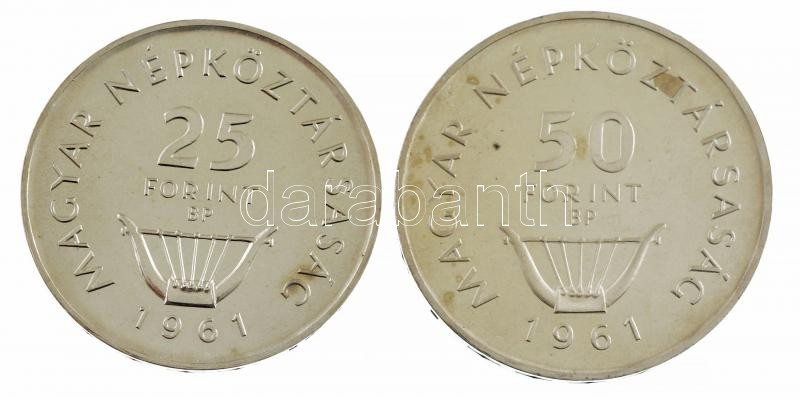 1961. 25Ft Ag + 50Ft Ag "Liszt" T:1- patina, kis karc