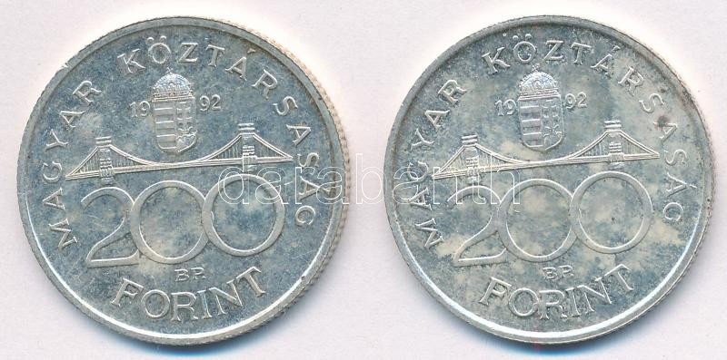 1992. 200Ft Ag "MNB" (2x) T:1- patina Adamo F13