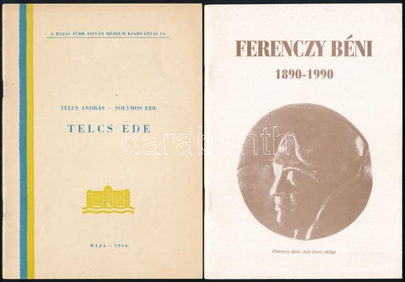 Gosztonyi József: Ferenczy Béni 1890-1990. Magyar Éremgyűjtők Egyesülete, Budapest + Telcs András - Solymos Ede: Telcs Ede 1872-1948. Türr István Múzeum, Baja, 1966. Mindkettő használt, jó állapotban.