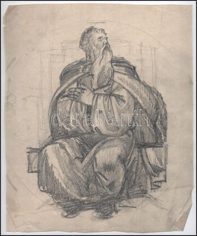 Muhits Sándor (1882-1956): Fohász. Ceruza, pauszpapír, jelzés nélkül, kissé sérült, 33×27 cm