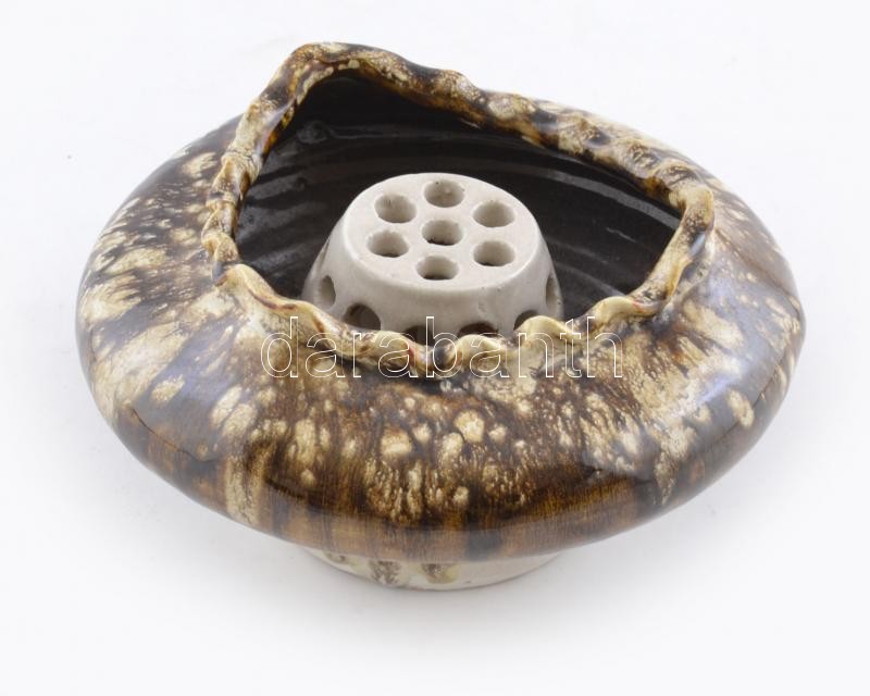 Retró mázas kerámia ikebana, jelzett (Benkő Ilona?), kis kopásnyomokkal, d: 15,5 cm