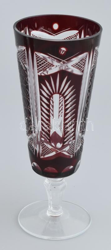 6 db bordó kristály borospohár, hibátlan, m: 17 cm