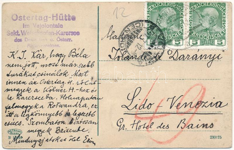 1912 Vigo di Fassa (Südtirol), Ostertaghütte der S. Welschnoven-Karers... https://www.darabanth.com/en/427-Online-auction/427.0/Postcards/Italy~1000086/1912-Vigo-di-Fassa-Sudtirol-Ostertaghutte-der-S-Welschnoven-Karersee-d-D-u-Oe-A-V-im-Ros~II2733529