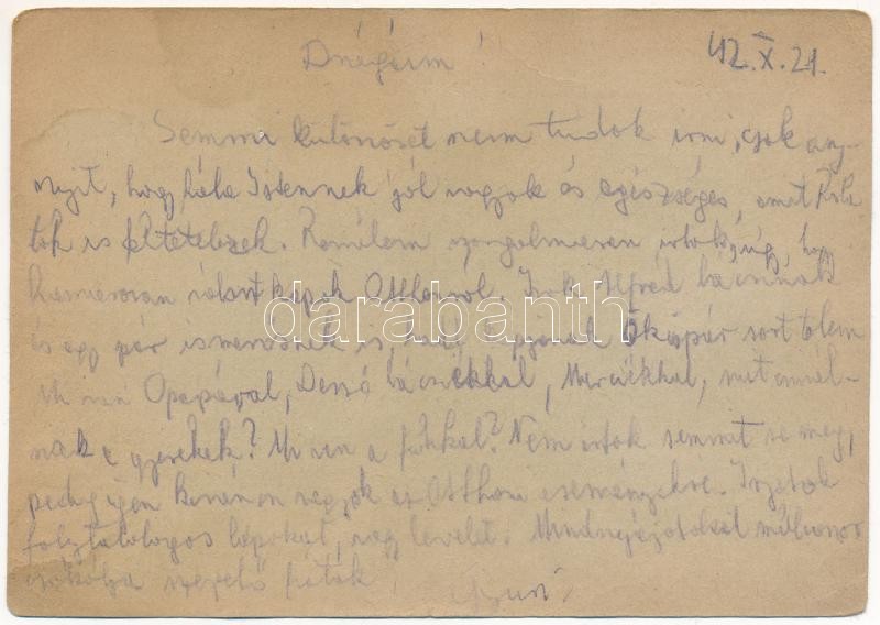 1942 Krausz György zsidó KMSZ (közérdekű munkaszolgálatos) tábori post... https://www.darabanth.com/en/427-Online-auction/427.0/Postcards/Judaica~1000030/1942-Krausz-Gyorgy-zsido-KMSZ-kozerdeku-munkaszolgalatos-tabori-posta-levele-csaladjanak-~II2733157
