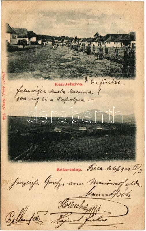1900 Tapolyhanusfalva, Hanusfalva, Hanusovce nad Toplou; Fő utca, Béla-telep. Divald Adolf 124. / street view