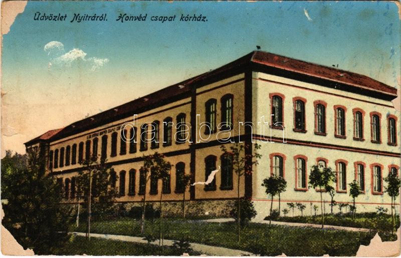1916 Nyitra, Nitra; Honvéd csapat kórház / K.u.K. military hospital (felületi sérülés / surface damage)