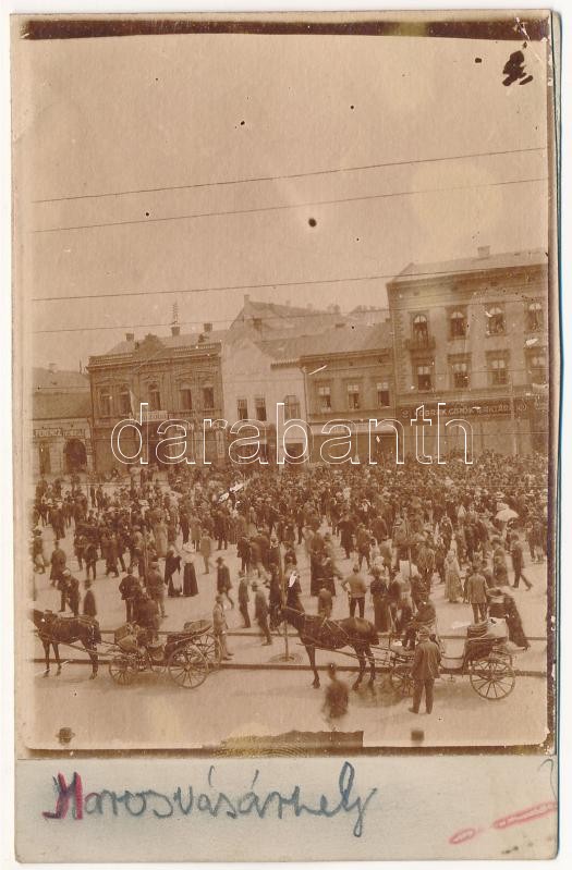 Marosvásárhely, Targu Mures; Széchenyi tér, Csiky Miklós, Gámán György üzlete, gyógyszertár, Központi szálloda és vendéglő, Kobrak cipők raktára, piac / square, shops, pharmacy, hotel and restaurant, warehouse, market. photo glued on postcard