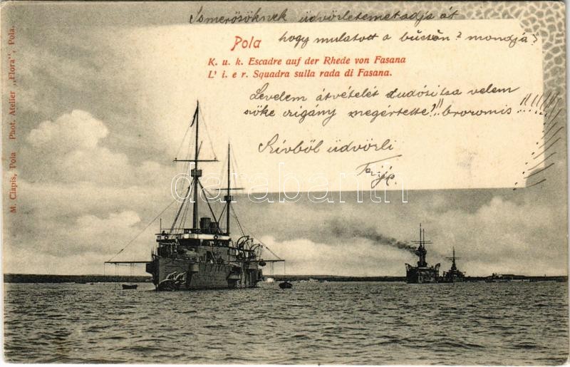 1900 Az Osztrák-Magyar Haditengerészet hajóraja a tengeren Fazana köze... https://www.darabanth.com/en/427-Online-auction/427.0/Postcards/Warships~1000024/1900-Az-Osztrak-Magyar-Haditengereszet-hajoraja-a-tengeren-Fazana-kozeleben-KuK-Escadre-au~II2729344