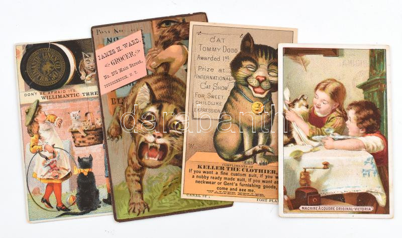 cca 1900 Cicás litho reklámkártya, 4 db, egyiken hibás sarok