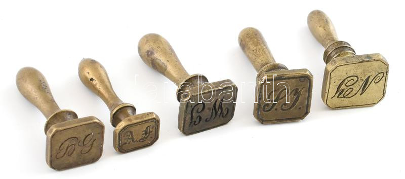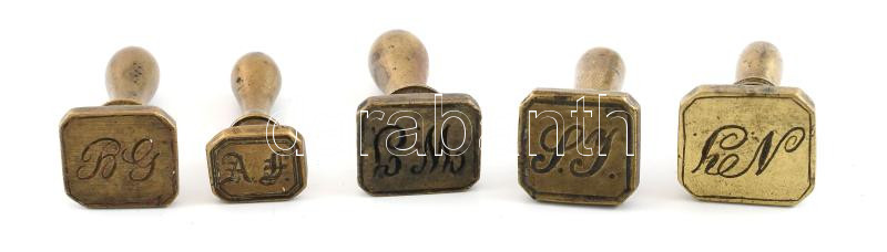 5 db réz, monogramos pecsétnyomó, m: 4,5 cm