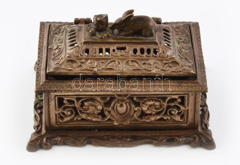 Áttört fém ládika nyúl figurával a tetején 15x12 cm