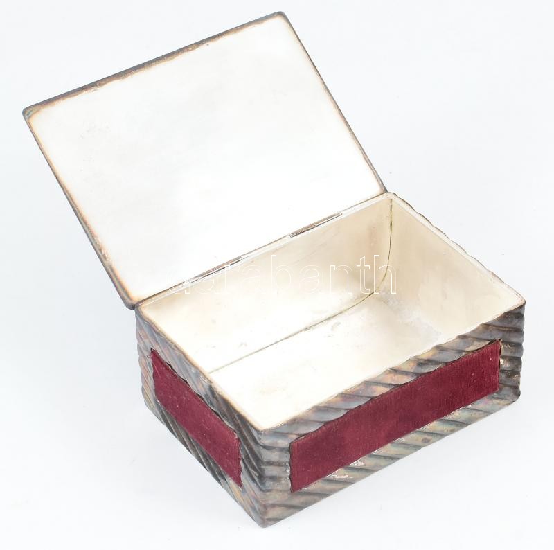 Cukordoboz. ezüstözött fém, bársony borítással 14x10x6 cm