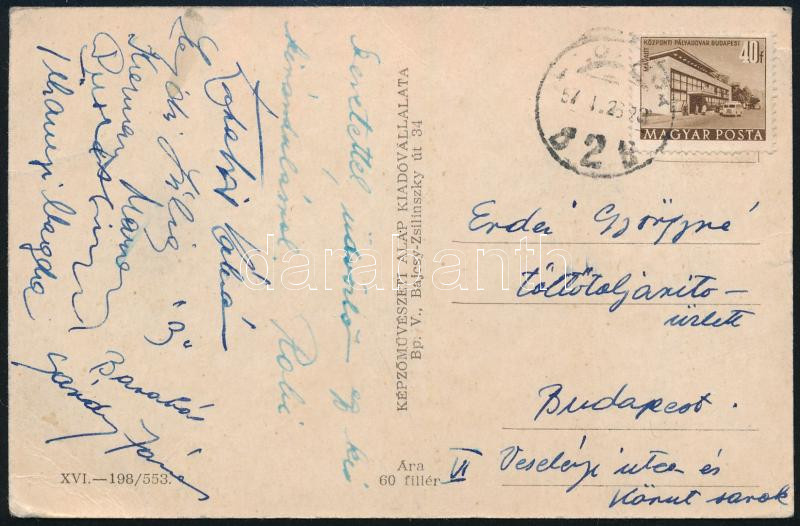 Latabár Kálmán, Haju Júlia, Kornay Mariann (Szenes Iván felesége) Sárdy János autográf aláírással ellátott képeslapja