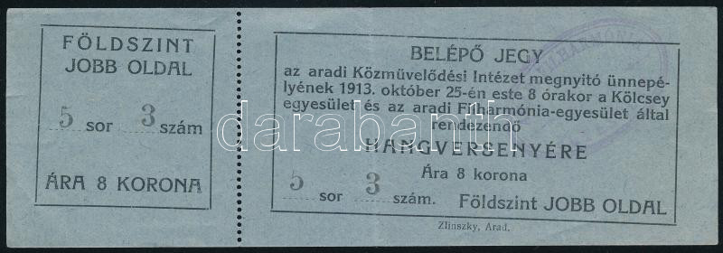 1913 Arad, Közművelődési Intézet hangverseny belépő
