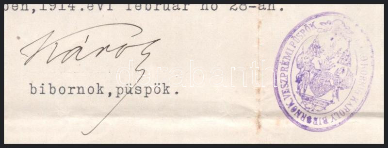 1914 Noszlopi plébánia vagyonának átadási jegyzőkönyve, Hornig Károly aláírásával