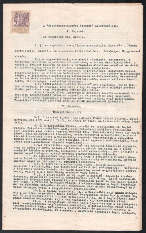 1922 A Szigetszentmiklósi Kaszinó alapszabályainak módosítása: alapsza...