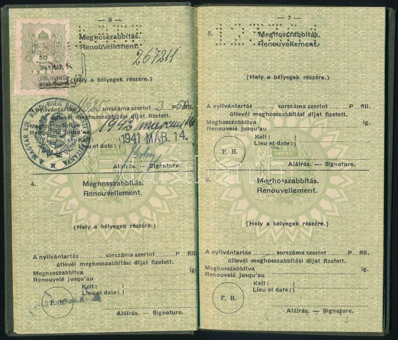 1941 Magyar Királyság által kiállított fényképes útlevél / Hungarian p...