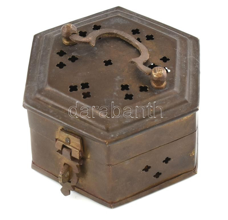 Áttört réz dobozka. Lakattal lezárható 8x8 cm