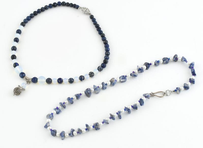 Sodalit és Lapis lazuli gyöngy nyaklánc, h: 50 és 45 cm