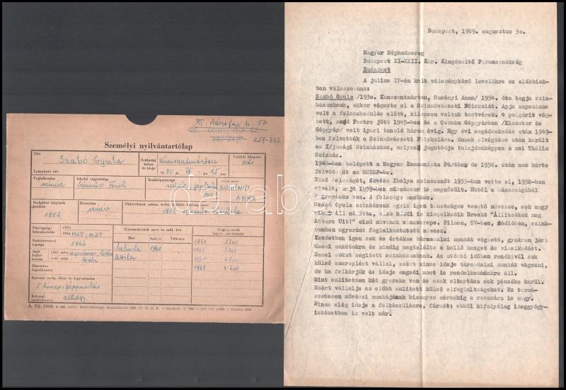 1960 Szabó Gyula (1930-2014) színművész személyi nyilvántartó kartonjá... https://www.darabanth.com/en/428-Online-auction/428.0/Art-and-other-collectibles/Historical-documents-manuscripts~500019/1960-Szabo-Gyula-1930-2014-szinmuvesz-szemelyi-nyilvantarto-kartonjanak-anyaga-Benne-alC3~II2698200