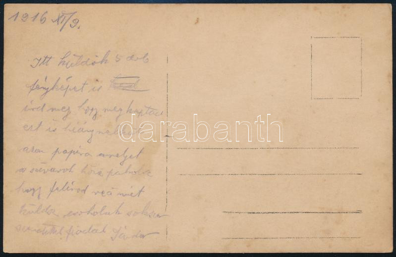 1916 4 db I. világháborús katonai fotólap, közte egy a hátoldalon megí...