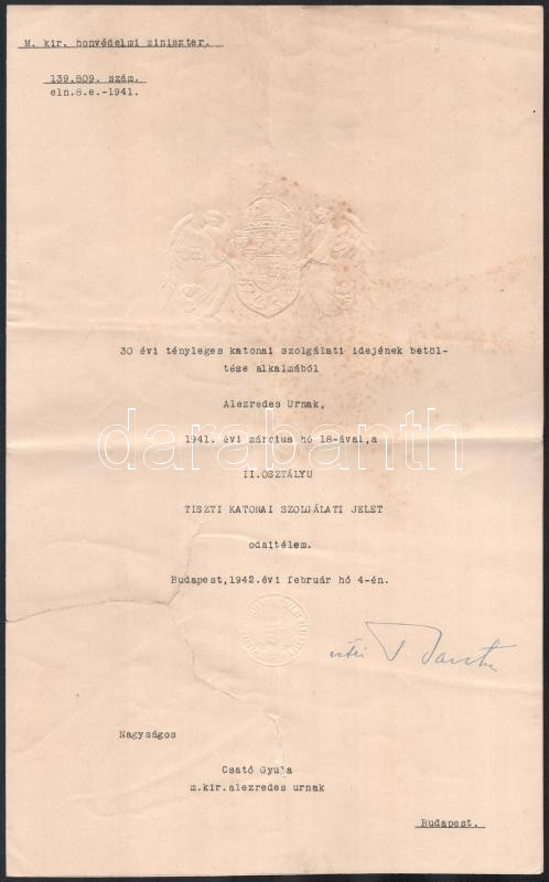 1942 Vitéz dálnokfalvi Bartha Károly (1884-1964) honvédelmi miniszter ... https://www.darabanth.com/en/428-Online-auction/428.0/Art-and-other-collectibles/Military~500028/1942-Vitez-dalnokfalvi-Bartha-Karoly-1884-1964-honvedelmi-miniszter-autograf-alairasa-II~II2739602
