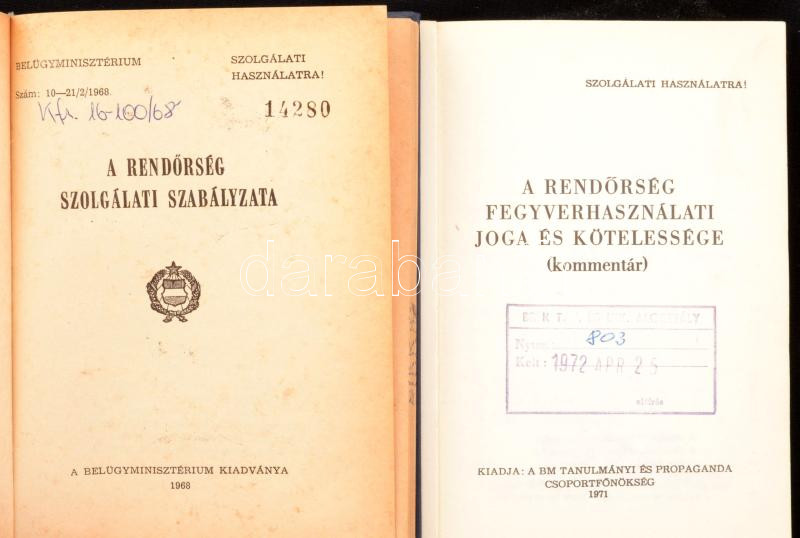 1972 A rendőrség fegyverhasználati joga és kötelessége, szolgálati has... https://www.darabanth.com/en/428-Online-auction/428.0/Art-and-other-collectibles/Military~500028/1972-A-rendorseg-fegyverhasznalati-joga-es-kotelessege-szolgalati-hasznalatra-kiadja-BM-T~II2742925