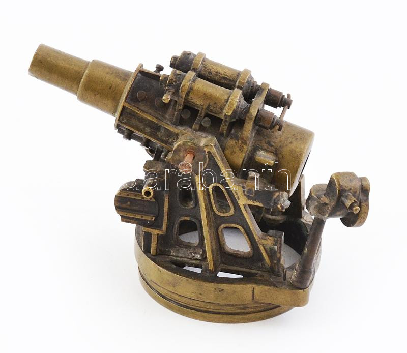 Fém ágyú modellje, asztali dísztárgy, javított, az álló oldalsó alkatr...
