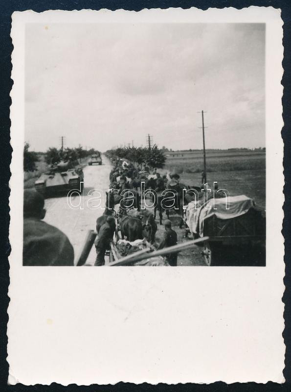 cca 1943 Katonai menetoszlop lovakkal és megrakott szekerekkel, mellet... https://www.darabanth.com/en/428-Online-auction/428.0/Art-and-other-collectibles/Military~500028/cca-1943-Katonai-menetoszlop-lovakkal-es-megrakott-szekerekkel-mellette-az-uton-nemet-PzKpfw-V~II2743203