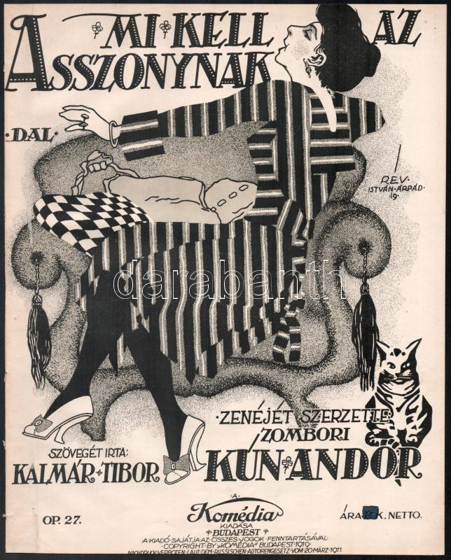 1919 Mi kell az asszonynak? (Dal). Szövegét írta: Kalmár Tibor, zenéjé... https://www.darabanth.com/en/428-Online-auction/428.0/Art-and-other-collectibles/Music-Musical-notes-Instruments~1000002/1919-Mi-kell-az-asszonynak-Dal-Szoveget-irta-Kalmar-Tibor-zenejet-szerzette-Kun-Andor~II2744458