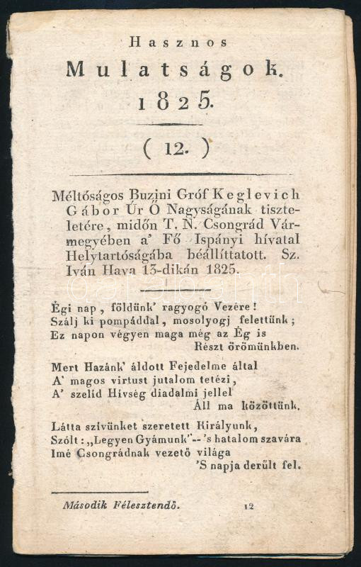 1825 A Hasznos Mulatságok c, irodalmi lap 12,38,47. számai