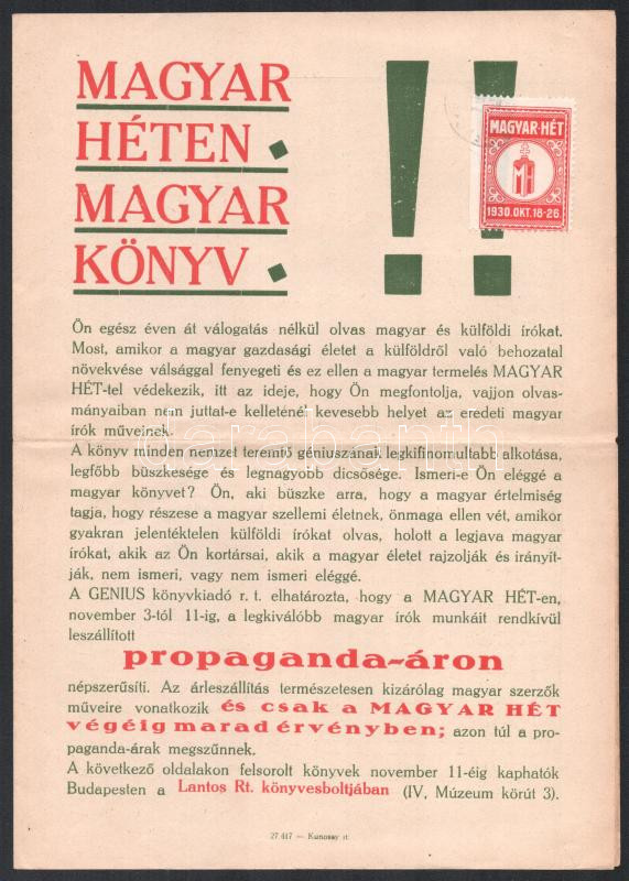 1928 "Magyar héten magyar könyv" propaganda kiadvány és megr...