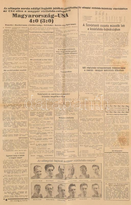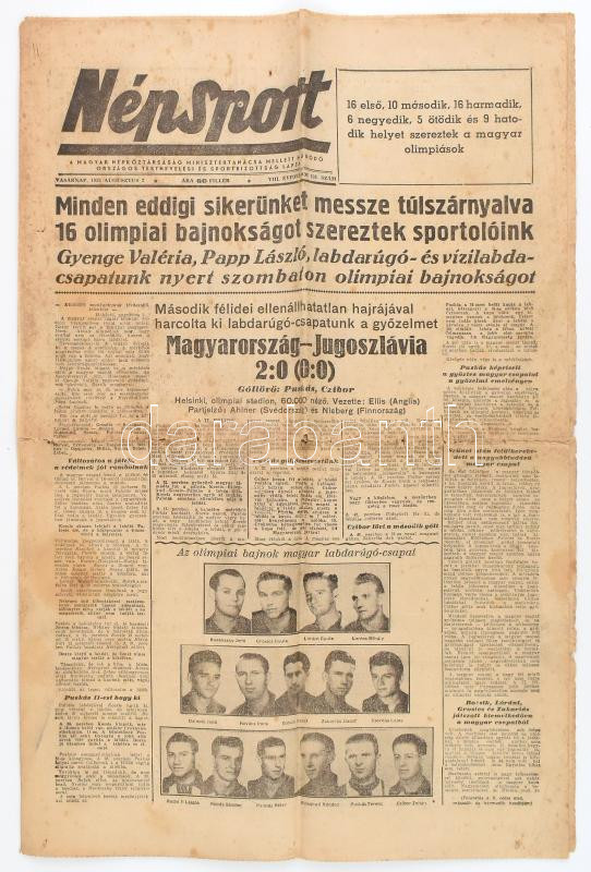 1952 Népsport 1952. augusztus 3. VIII. évf. 158. száma: Benne a Helsin... https://www.darabanth.com/en/428-Online-auction/428.0/Art-and-other-collectibles/Printed-Materials~1000004/1952-Nepsport-1952-augusztus-3-VIII-evf-158-szama-Benne-a-Helsinki-olimpia-hireivel-a-ci~II2701643
