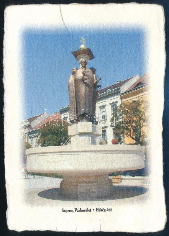 cca 2000 Sopron, Várkerület, Hűség-kút, merített papírra nyomott képeslap, 15x10,5 cm