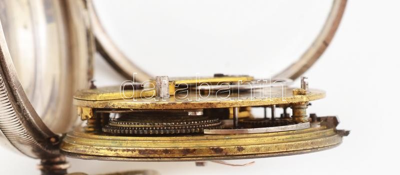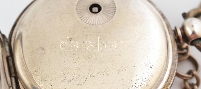 Ezüst (Ag) tokos Brookhouse zsebóra, 1850 körül, láncos szerkezettel, ...