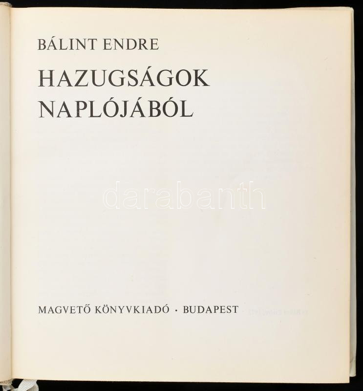 Bálint Endre: Hazugságok naplójából. Bp., 1972, Magvető. Fekete-fehér ...