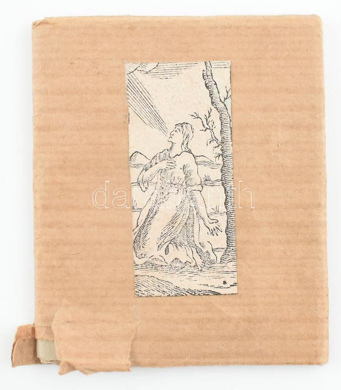 Description: Allgemeine Tisch-Gebetter vor und nach dem Essen zu sprechen" (31)p. h.n., é.n. (cca 1700) ny.n. Kis étkezés előtti és utáni, asztali imádságokat tartalmazó könyv. Körbevágva, későbbi papírkötésben, egy fametszetű fejléccel Ritka! 10x8 cm