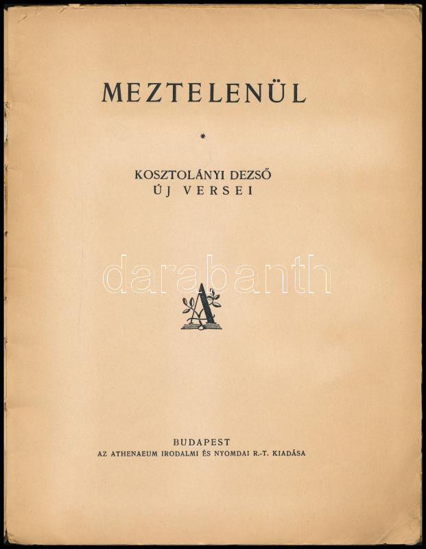 https://www.darabanth.com/en/428-Online-auction/428.0/Books/Books-Other-rarities~1000026/Kosztolanyi-Dezso-Meztelenul-Elso-kiadas-Bp-1927-Athenaeum-Kiadoi-papirkotes-viselt~II2740128
