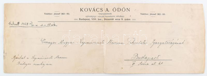 https://www.darabanth.com/en/428-Online-auction/428.0/Hungarian-philately-and-postal-history/Document-Stamps~500017/1928-Kovacs-A-Odon-gepeszmernok-altal-kuldott-boritek-ket-sajat-levelzaroval-es-s~II2745545