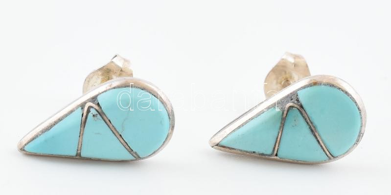 Ezüst (Ag) Zuni indián fülbevalópár, arizóniai türkizzel, bruttó: 1,6 ...