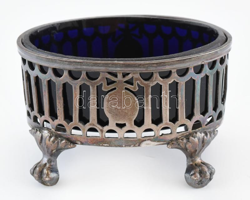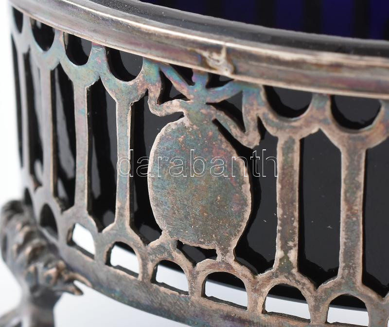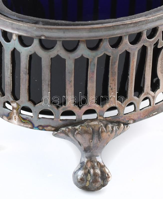 Ezüst (Ag) fűszertartó üveg betéttel. Jelzett. 8 cm br 75 g