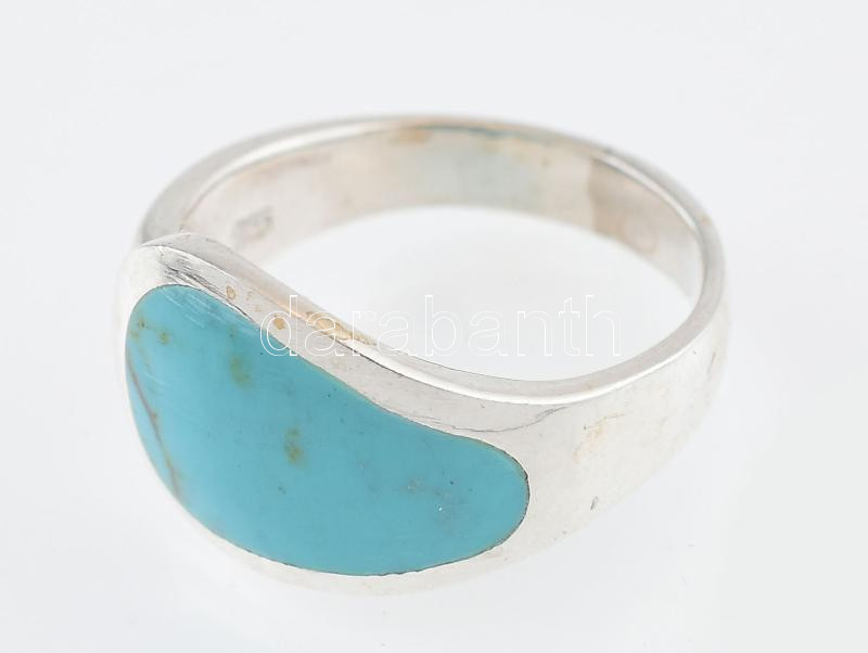 Ezüst(Ag) gyűrű türkizzel, jelzett, méret: 53, bruttó: 3,8 g